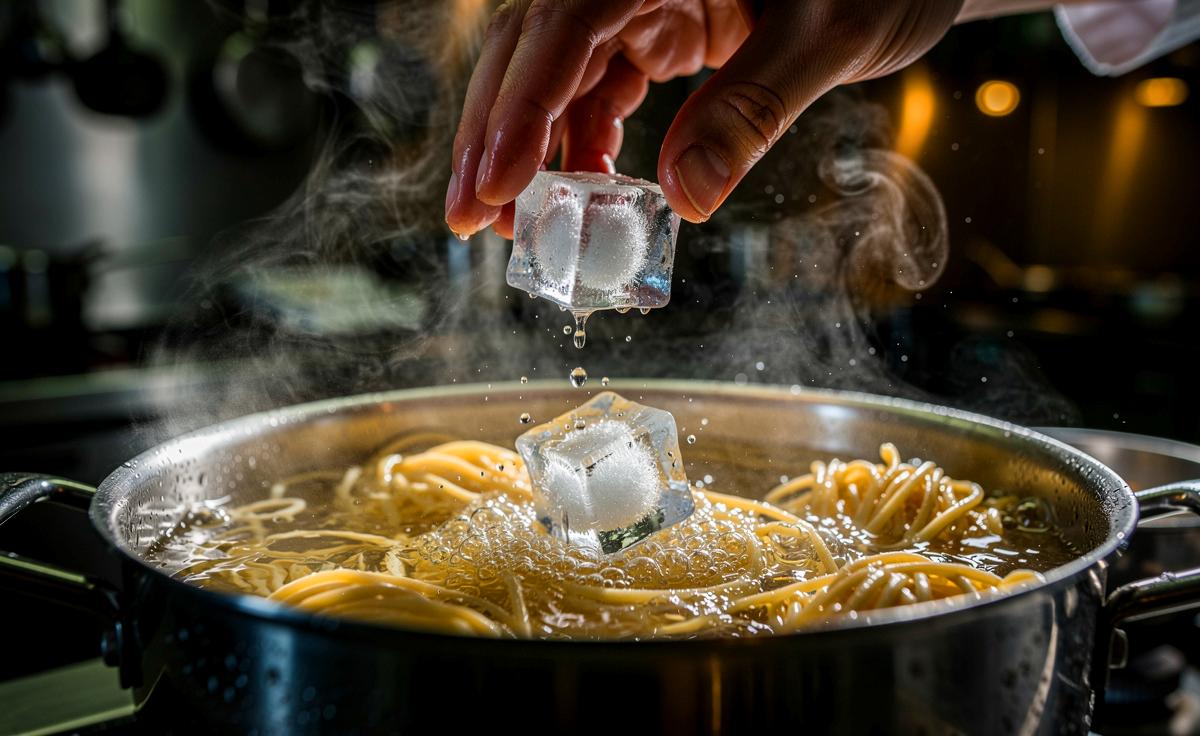 - 🧊 Thermischer Schock: Eiswürfel senken die Temperatur des Kochwassers abrupt, was die äußere Schicht der Nudel verfestigt und das übermäßige Auslaugen von Stärke verhindert.